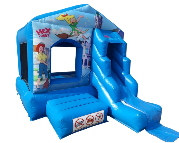 Mit unserer Bibi-Blocksberg Hüpfburg fliegen kleine Hexen und Zauberer mitten hinein ins Abenteuer. Bunte Motive, fröhliche Farben und ein sicherer Hüpfbereich machen dieses Modul zum perfekten Highlight für jedes Kinderfest. Hier wird gehüpft, gelacht und – natürlich – ein bisschen gehext!